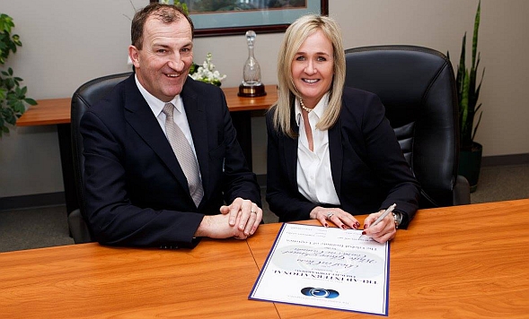 Linda Collier President and Founder of Tri-Ad International Signs the ‘Best in Class’ Certification with Kieran Ring CEO & Founder of the Global Institute of Logistics.